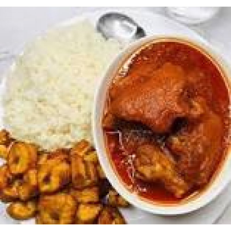 Jollof rice is a popular one-pot dish from West Africa featuring long-grain rice cooked in a flavorful tomato and pepper broth, seasoned with spices like curry powder and thyme. Variations exist across regions and families, but it's a beloved staple, often served with meats, fish, or as a flavorful side dish at parties and gatherings